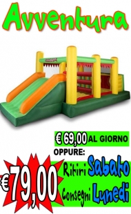L'AVVENTURA GIGANTE PER PICCOLI CORSARIVersione PRO in PVC rinforzato con due scivoli di diverse altezze e ampio salterello. Robusto e divertente! Richiede bagagliaio capiente. | |
