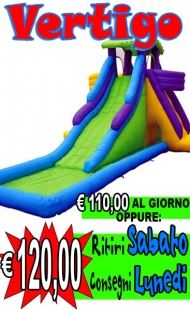 LO SCIVOLO D'ACQUA GIGANTEVertigo: il gigante tra i gonfiabili in Italia! Alto 3,60m e lungo 6,5m, offre due grandi arrampicate e un doppio scivolo. Massimo divertimento e sicurezza per il tuo giardino. | |