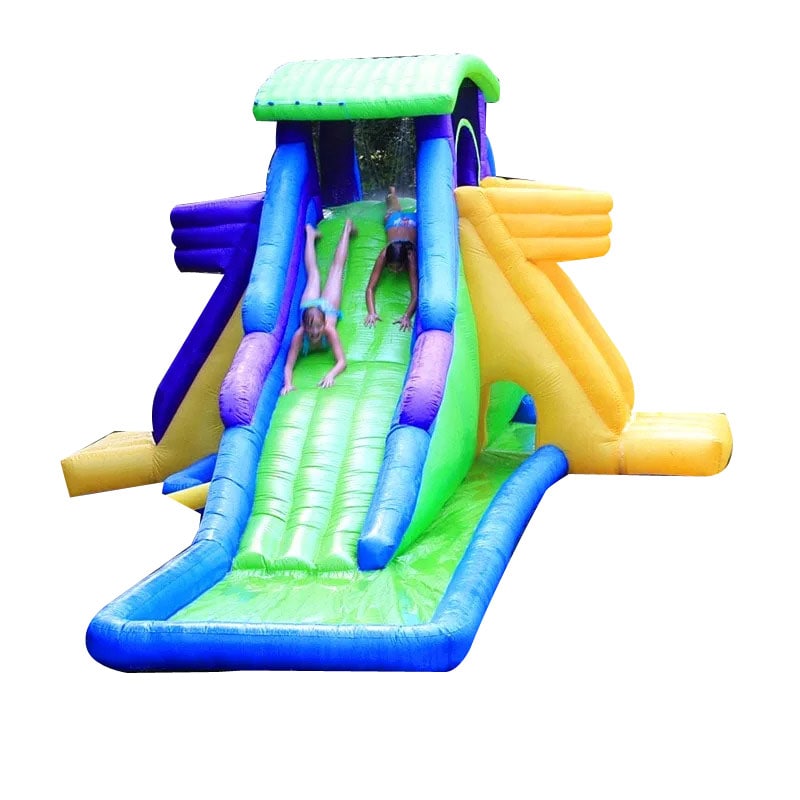 - Doppio Scivolo Lungo: Due corsie per discese mozzafiato con tuffo rinfrescante finale.