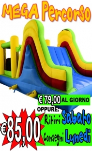 Dato che il Megapercorso ha ingresso e uscita distinti, ti suggeriamo di posizionarlo in modo da creare un "circuito" nel giardino. Un trucco professionale: posiziona l'uscita dello scivolo vicino all'area buffet per gestire al meglio il movimento dei bambini!