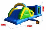 Jump e Slide Pro è il gonfiabile più dinamico e completo della nostra linea professionale. Con una lunghezza di 7 metri, questo percorso offre un ampio salterello che da accesso ad un entusialmante percoso ad ostacoli. Realizzato interamente in PVC professionale.