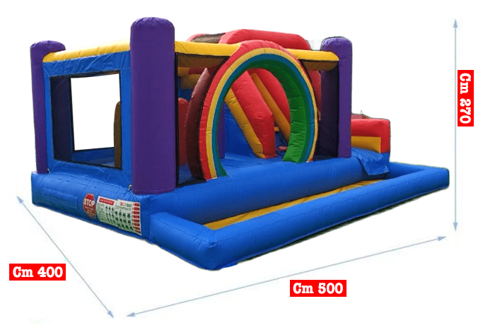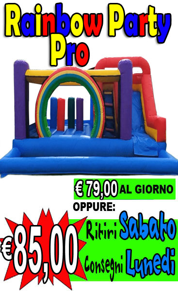 Il Rainbow Party PRO è il gonfiabile più allegro e luminoso della nostra collezione. Caratterizzato da un fantastico ingresso ad arcobaleno che accoglie i bambini in un mondo di magia, questo modello si distingue per i colori ultra-vivaci e la finitura brillante del PVC professionale. È la scelta ideale per un allestimento scenografico e di altissima qualità.