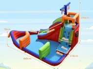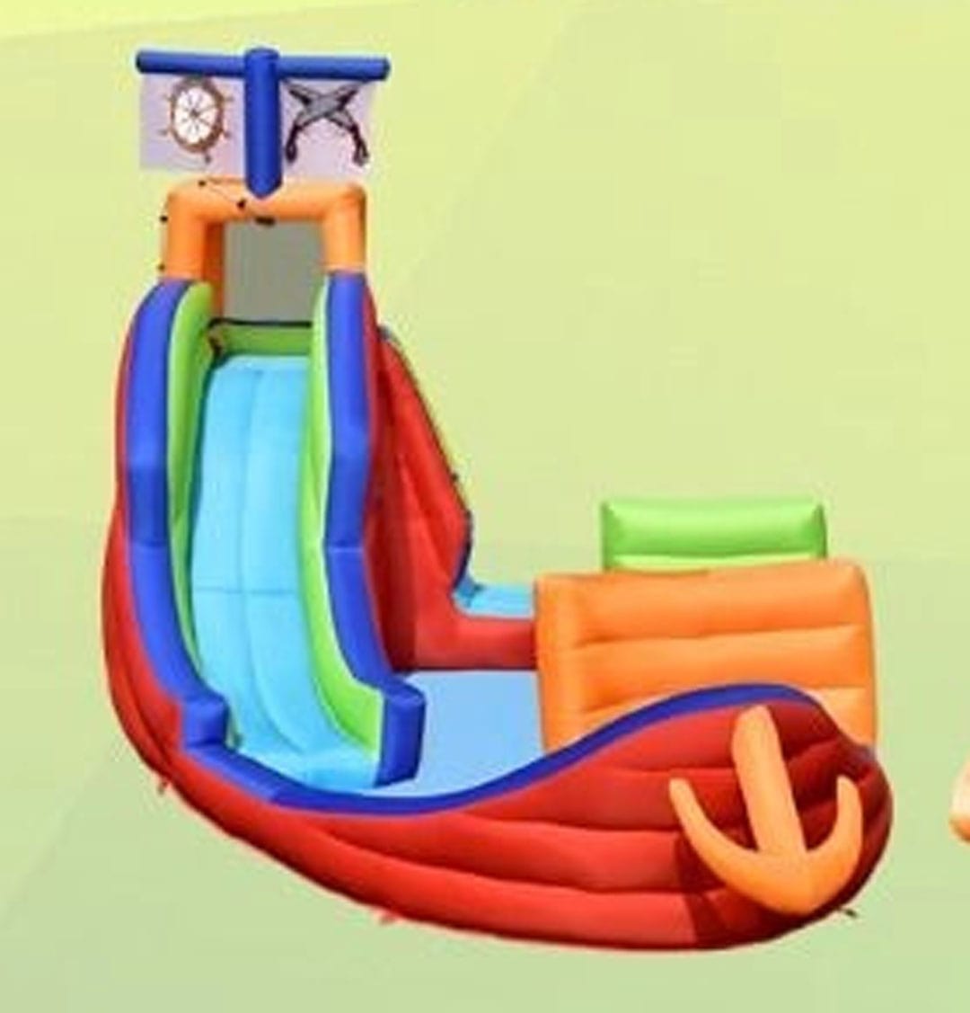 - Arrampicata e Scivolo: Una scaletta morbida porta al ponte di comando, da cui i piccoli pirati possono scivolare verso la "baia".