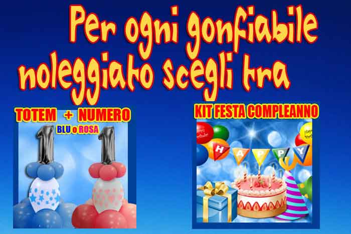 Cosa vuole sempre fare un bambino? Ovviamente vorrebbe sempre giocare e divertirsi con i suoi amici! Perche' allora non rendere indimenticabili le vostre feste noleggiando un Gonfiabile? I nostri gonfiabili sono perfetti per ogni ricorrenza: compleanni, comunioni, matrimoni, battesimi. Vi basta solo spazio in giardino o anche in casa , e i vostri piccoli invitati potranno giocare e divertirsi insieme.
