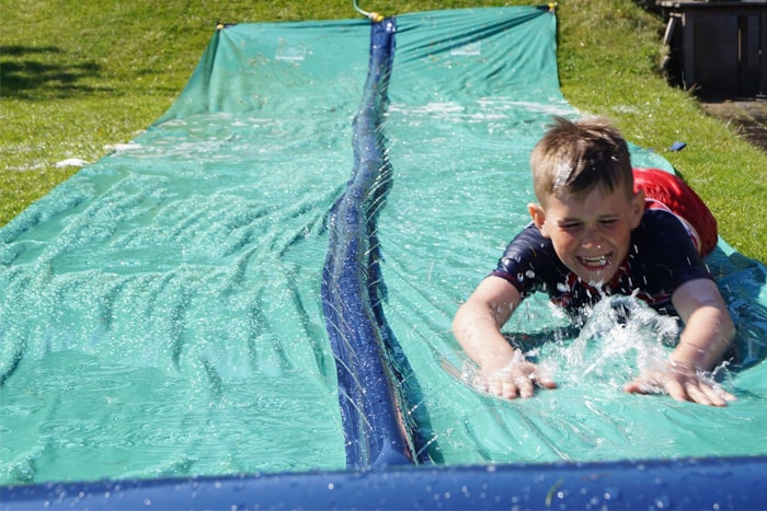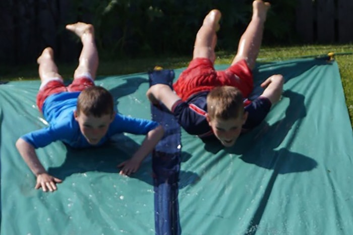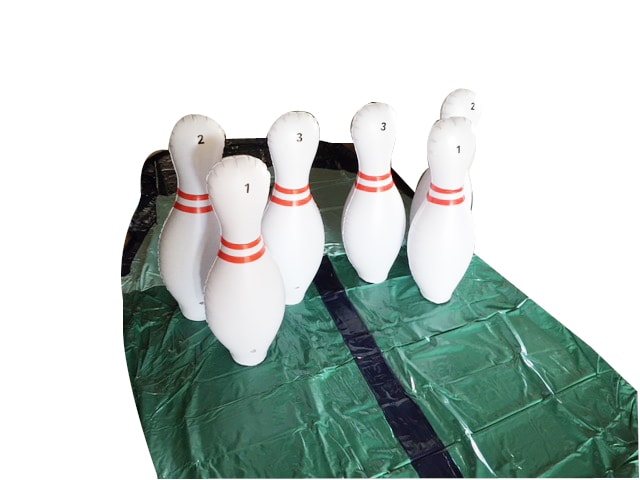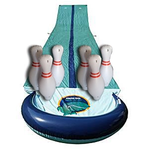 Sfida i tuoi amici ad una sfida di...bowling acquatico!... lanciati su uno scivolo con 2 corsie e cerca di abbattere i 3 birilli posti alla fine prima del tuo avversario! collega lo scivolo ad una canna dell'acqua in modo da tenerlo sempre bagnato grazie a dei piccoli getti laterali.