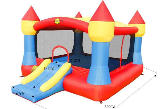 Castello XXL è un gonfiabile cha abbina le sue dimensioni molto grandi ad un peso contenuto che lo rendono semplice da trasportare. Dispone di un grande salterello che riesce a contenere 5/6 bambini che potranno giocare e saltare in assoluta tranquillità grazie alle reti di protezione presenti su tutti i lati. Frontalmente è presente anche uno scivolo non molto ripido che lo rende adatto anche all’uso dei bambini più piccoli. Dotato anche un telo parasole.