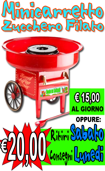 Con la nostra incredibile ed innovativa Macchina Zucchero Filato puoi goderti un vero e delizioso zucchero filato quando vuoi! Questa meravigliosa e pratica macchina ti permetterà di prepararlo facilmente ed in pchi minuti. I tuoi bambini lo adoreranno!