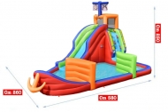 - Piscina Finale: Lo scivolo termina in un'ampia vasca utilizzabile come area di atterraggio morbida o riempita d'acqua per un tuffo rinfrescante.
