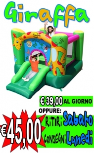 Il gonfiabile Giraffa è il compagno di giochi ideale per i bambini della prima infanzia. Grazie alle sue dimensioni estremamente contenute, è la scelta perfetta per allestire un angolo di divertimento in salotto, in una piccola taverna o in un giardino.